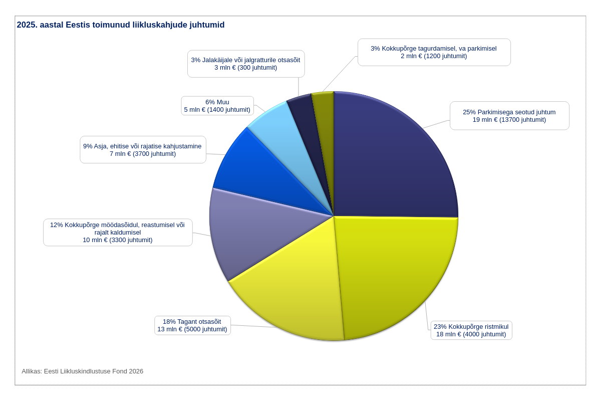 2025. aasta juulis registreeriti Eestis 2748 ja septembris 2841 liikluskindlustuse juhtumit. See on rohkem kui nende kuude jooksul kunagi varem sel sajandil. Võrreldes viimase kümne aasta keskmisega oli juuli näitaja 8% ja septembri näitaja 7% kõrgem.